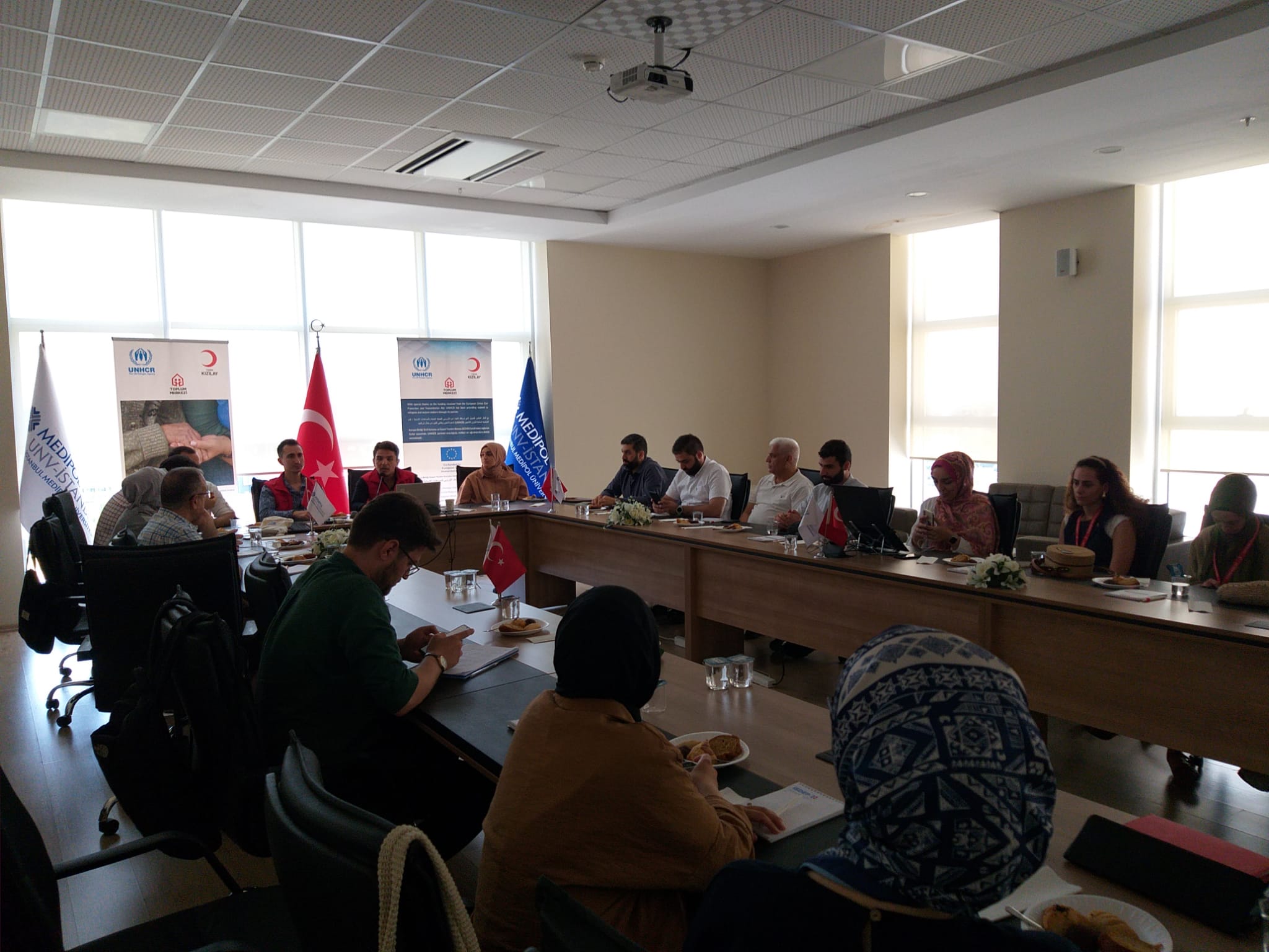 The meeting was attended by numerous Syrian and Turkish institutions concerned with this matter, in addition to some members and administrators of the Turkish Red Crescent. Participants listened to contributions related to the organization’s capacity and work in combating racism and protecting refugees.