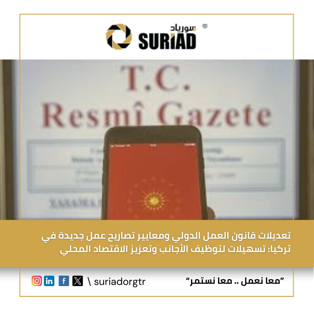 في قرار صدر يوم 15 أكتوبر 2024 ونُشر في الجريدة الرسمية التركية، تم الإعلان عن تعديلات جديدة على اللائحة التنفيذية لقانون العمل الدولي رقم 31738، والتي تهدف إلى تبسيط عملية توظيف الأجانب وتعزيز الاقتصاد المحلي من خلال تنظيم سوق العمل. تركز التعديلات على تحسين أوضاع الفئات الحاصلة على الحماية المؤقتة والإقامة الإنسانية، وتقليل نسبة العمالة غير المسجلة، إضافة إلى تحفيز استقطاب الأجانب ذوي الكفاءات العالية.